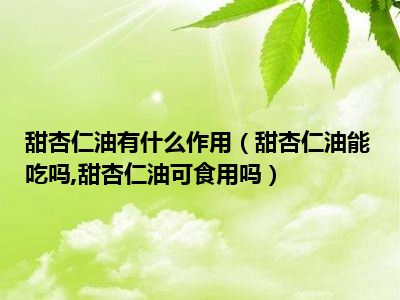 导读目前大家应该是对甜杏仁油能吃吗,甜杏仁油可食用吗比较感兴趣的,所以今天小编CC就来为大家整理了一些关于甜杏仁油能吃吗,甜杏仁油可食用吗...