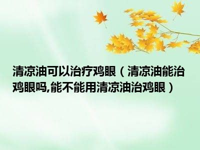目前大家应该是对清凉油能治鸡眼吗,能不能用清凉油治鸡眼比较感兴趣的,所以今天小编CC就来为大家整理了一些关于清凉油能治鸡眼吗,能不能用清凉油治鸡眼方面的相关知识来分享给大家,希望大家会喜欢哦。