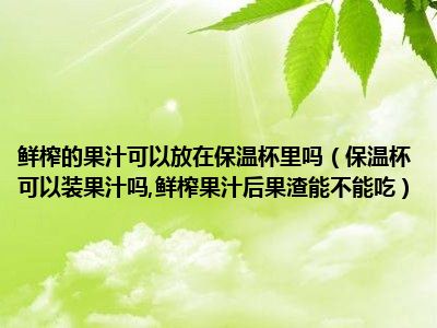目前大家应该是对保温杯可以装果汁吗,鲜榨果汁后果渣能不能吃比较感兴趣的,所以今天小编CC就来为大家整理了一些关于保温杯可以装果汁吗,鲜榨果汁后果渣能不能吃方面的相关知识来分享给大家,希望大家会喜欢哦。