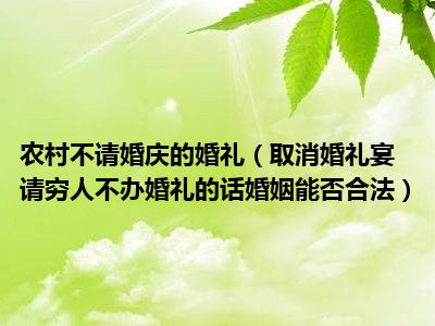 目前大家应该是对取消婚礼宴请穷人,不办婚礼的话婚姻能否合法比较感兴趣的,所以今天CC就来为大家整理了一些关于取消婚礼宴请穷人,不办婚礼的话婚姻能否合法方面的相关知识来分享给大家,希望大家会喜欢哦。
