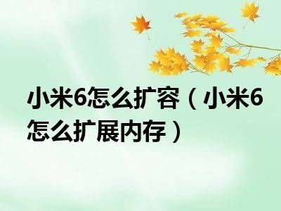 导读 1、小米6怎么扩展内存2、小米6采用双Nano SIM卡槽设计,但不支持Micro SD卡扩展。另外支持双卡双待全网通网络制式。也就是说不支持TF