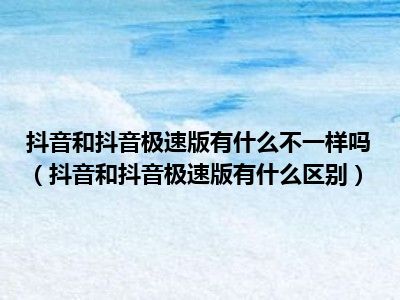 导读 1、抖音和抖音极速版有什么区别2、其实抖音的短视频和Tik Tok的极速版没什么区别。界面是一样的,功能也是一样的,只是极速版多了一个“