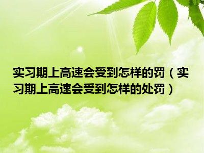 目前大家应该是对实习期上高速会受到怎样的处罚比较感兴趣的,所以今天CC就来为大家整理了一些关于实习期上高速会受到怎样的处罚方面的相关知识来分享给大家,希望大家会喜欢哦。