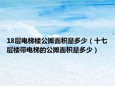 导读 目前大家应该是对十七层楼带电梯的公摊面积是多少比较感兴趣的,所以今天好房网小编CC就来为大家整理了一些关于十七层楼带电梯的公摊面积是