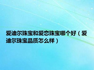 目前应该是有很多小伙伴对于爱迪尔珠宝品质怎么样方面的信息比较感兴趣,现在小编就收集了一些与爱迪尔珠宝品质怎么样相关的信息来分享给
