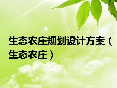 1、生态农庄 生态农庄的概念是由吕家发在《社会主义新农村建设中的信息技术和资源环境问题研究》中提出,指以绿色、生态、环保为目标,以资源有效利用为载体,以科技创新为支撑,以市场化运作为手段,集农业生产深加工与观光旅游为一体的规模集约化农业公司。