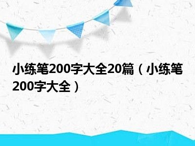 目前应该是有很多小伙伴对于小练笔200字大全方面的信息比较感兴趣,现在小编就收集了一些与小练笔200字大全相关的信息来分享给大家,感兴趣的小伙伴可以接着往下看,希望会帮助到你哦。