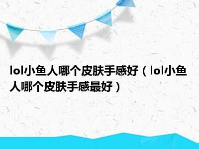 目前应该是有很多小伙伴对于lol小鱼人哪个皮肤手感最好方面的信息比较感兴趣,现在小编就收集了一些与lol小鱼人哪个皮肤手感最好相关的信息来分享给大家,感兴趣的小伙伴可以接着往下看,希望会帮助到你哦。