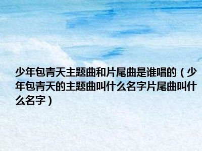 目前应该是有很多小伙伴对于少年包青天的主题曲叫什么名字片尾曲叫什么名字方面的信息比较感兴趣,现在小编就收集了一些与少年包青天的主题曲叫什么名字片尾曲叫什么名字相关的信息来分享给大家,感兴趣的小伙伴可以接着往下看,希望会帮助到你哦。