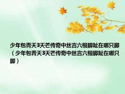 目前应该是有很多小伙伴对于少年包青天3天芒传奇中丝言六根脚趾在哪只脚方面的信息比较感兴趣,现在小编就收集了一些与少年包青天3天芒传奇中丝言六根脚趾在哪只脚相关的信息来分享给大家,感兴趣的小伙伴可以接着往下看,希望会帮助到你哦。