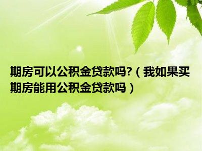 导读 目前大家应该是对我如果买期房能用公积金贷款吗比较感兴趣的,所以今天好房网小编CC就来为大家整理了一些关于我如果买期房能用公积金贷款吗