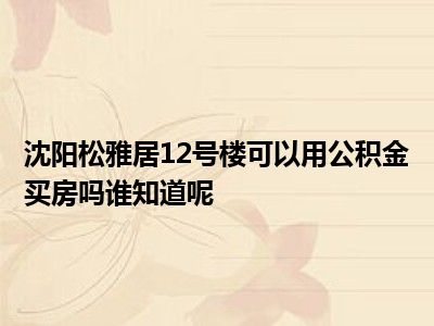 导读 目前大家应该是对沈阳雅颂居12号楼可以用公积金买房吗谁知道呢比较感兴趣的,所以今天好房网小编CC就来为大家整理了一些关于沈阳雅