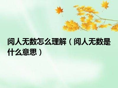 目前应该是有很多小伙伴对于阅人无数是什么意思方面的信息比较感兴趣,现在小编就收集了一些与阅人无数是什么意思相关的信息来分享给大家,感兴趣的小伙伴可以接着往下看,希望会帮助到你哦。