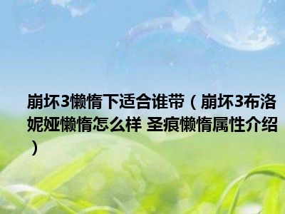 目前应该是有很多小伙伴对于崩坏3布洛妮娅懒惰怎么样 圣痕懒惰属性介绍方面的信息比较感兴趣,现在小编就收集了一些与崩坏3布洛妮娅懒惰怎么样 圣痕懒惰属性介绍相关的信息来分享给大家,感兴趣的小伙伴可以接着往下看,希望会帮助到你哦。