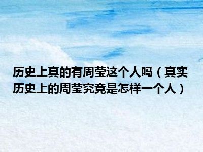 目前应该是有很多小伙伴对于真实历史上的周莹究竟是怎样一个人方面的信息比较感兴趣,现在小编就收集了一些与真实历史上的周莹究竟是怎样一个人相关的信息来分享给大家,感兴趣的小伙伴可以接着往下看,希望会帮助到你哦。