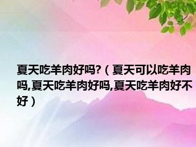 目前大家应该是对夏天可以吃羊肉吗,夏天吃羊肉好吗,夏天吃羊肉好不好比较感兴趣的,所以今天小编CC就来为大家整理了一些关于夏天可以吃羊肉吗,夏天吃羊肉好吗,夏天吃羊肉好不好方面的相关知识来分享给大家,希望大家会喜欢哦。