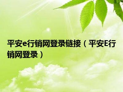 目前应该是有很多小伙伴对于平安E行销网登录方面的信息比较感兴趣,现在小编就收集了一些与平安E行销网登录相关的信息来分享给大家,感兴趣的小伙伴可以接着往下看,希望会帮助到你哦。