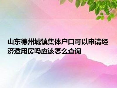 导读 目前大家应该是对山东德州城镇集体户口可以申请经济适用房吗应该怎么查询呢比较感兴趣的,所以今天好房网小编CC就来为大家整理了一些关