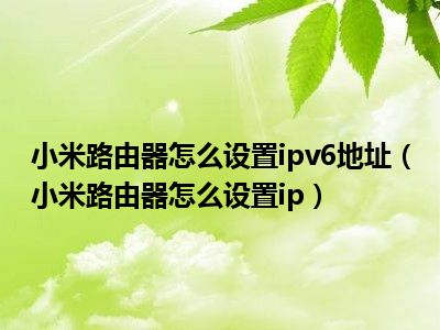 1、 小米路由器怎么设置ip?