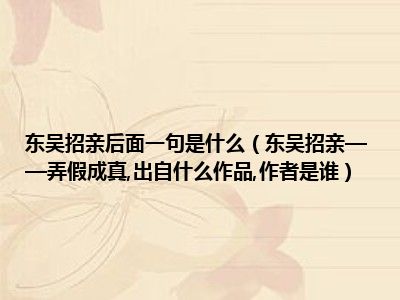 目前应该是有很多小伙伴对于东吴招亲——弄假成真,出自什么作品,作者是谁方面的信息比较感兴趣,现在小编就收集了一些与东吴招亲——弄假成真,出自什么作品,作者是谁相关的信息来分享给大家,感兴趣的小伙伴可以接着往下看,希望会帮助到你哦。