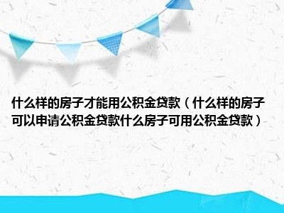 导读 目前大家应该是对什么样的房子可以申请公积金贷款什么房子可用公积金贷款比较感兴趣的,所以今天好房网小编CC就来为大家整理了一些关于什么