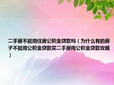导读 目前大家应该是对为什么有的房子不能用公积金贷款买二手房用公积金贷款攻略比较感兴趣的,所以今天好房网小编CC就来为大家整理了一些关于为