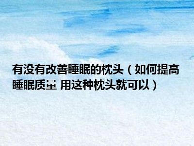 目前大家应该是对如何提高睡眠质量 用这种枕头就可以比较感兴趣的,所以今天小编CC就来为大家整理了一些关于如何提高睡眠质量 用这种枕头就可以方面的相关知识来分享给大家,希望大家会喜欢哦。