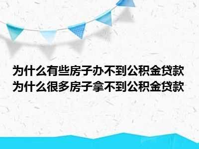导读 目前大家应该是对为什么有的房子不能公积金贷款为什么很多房子都不能公积金贷款比较感兴趣的,所以今天好房网小编CC就来为大家整理了一些关
