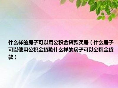 导读 目前大家应该是对什么房子可以使用公积金贷款什么样的房子可以公积金贷款比较感兴趣的,所以今天好房网小编CC就来为大家整理了一些关于什么