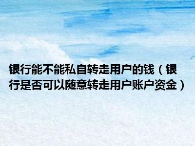 目前大家应该是对银行是否可以随意转走用户账户资金比较感兴趣的,所以今天CC就来为大家整理了一些关于银行是否可以随意转走用户账户资金方面的相关知识来分享给大家,希望大家会喜欢哦。
