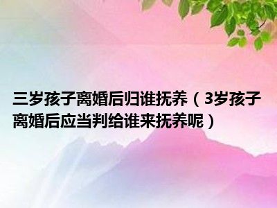 目前大家应该是对3岁孩子离婚后应当判给谁来抚养呢比较感兴趣的,所以今天CC就来为大家整理了一些关于3岁孩子离婚后应当判给谁来抚养呢方面的相关知识来分享给大家,希望大家会喜欢哦。