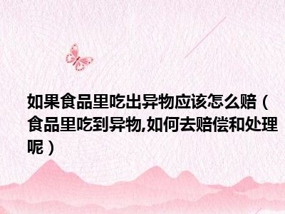 目前大家应该是对食品里吃到异物,如何去赔偿和处理呢比较感兴趣的,所以今天CC就来为大家整理了一些关于食品里吃到异物,如何去赔偿和处理呢方面的相关知识来分享给大家,希望大家会喜欢哦。
