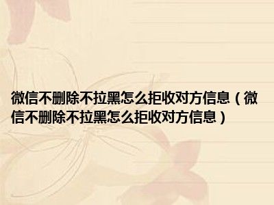 导读 1、微信不删除不拉黑怎么拒收对方信息?2、微信不能设置拒绝对方的消息而不删除或黑掉。如果不想查看对方的消息,可以设置消息勿扰,这样对