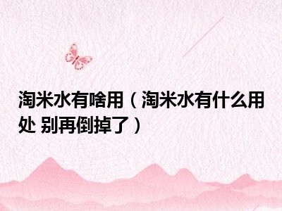 目前大家应该是对淘米水有什么用处 别再倒掉了比较感兴趣的,所以今天小编CC就来为大家整理了一些关于淘米水有什么用处 别再倒掉了方面的相关知识来分享给大家,希望大家会喜欢哦。