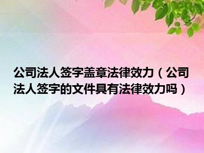 目前大家应该是对公司法人签字的文件具有法律效力吗比较感兴趣的,所以今天CC就来为大家整理了一些关于公司法人签字的文件具有法律效力吗方面的相关知识来分享给大家,希望大家会喜欢哦。