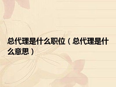 目前应该是有很多小伙伴对于总代理是什么意思方面的信息比较感兴趣,现在小编就收集了一些与总代理是什么意思相关的信息来分享给大家,感兴趣的小伙伴可以接着往下看,希望会帮助到你哦。