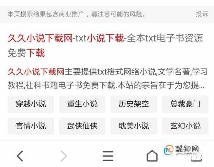 我以手机为例,直接在手机上搜索“久久小说下载网”,进入网站。