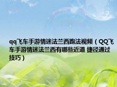 目前应该是有很多小伙伴对于QQ飞车手游情迷法兰西有哪些近道 捷径通过技巧方面的信息比较感兴趣,现在小编就收集了一些与QQ飞车手游情迷