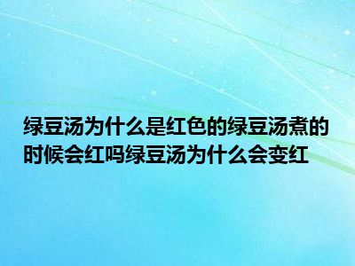 目前大家应该是对绿豆汤为什么是红色的,绿豆汤煮出来是红色的能喝吗,绿豆汤变红原因比较感兴趣的,所以今天小编CC就来为大家整理了一些关于绿豆汤为什么是红色的,绿豆汤煮出来是红色的能喝吗,绿豆汤变红原因方面的相关知识来分享给大家,希望大家会喜欢哦。