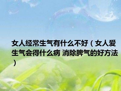目前大家应该是对女人爱生气会得什么病 消除脾气的好方法比较感兴趣的,所以今天小编CC就来为大家整理了一些关于女人爱生气会得什么病 消除脾气的好方法方面的相关知识来分享给大家,希望大家会喜欢哦。