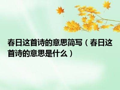 目前应该是有很多小伙伴对于春日这首诗的意思是什么方面的信息比较感兴趣,现在小编就收集了一些与春日这首诗的意思是什么相关的信息来分享给大家,感兴趣的小伙伴可以接着往下看,希望会帮助到你哦。