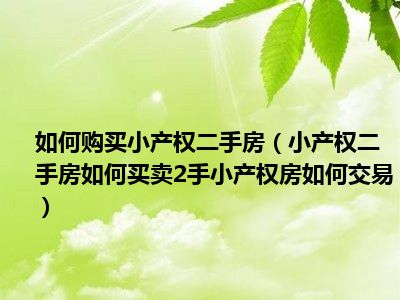 法律规定不可以交易。《国土资源部关于严格建设用地管理促进批而未用土地利用的通知》第四条: 严肃查处违反土地管理法律法规新建“小产权房”和高尔夫球场项目用地。必须严格按照《土地管理法》和《关于严格执行有关农村集体建设用地法律和政策的通知》(国办发〔2007〕71号)的规定执行。对在建在售的以新农村建设、村庄改造、农民新居建设和设施农业、观光农业等名义占用农村集体土地兴建商品住宅,在地方政府统一组织协调下,必须采取强力措施,坚决叫停管住并予以严肃查处。二手小产权房交易方法:小产权房是指在农村集体土地上建设的房屋,未缴纳土地出让金等费用,其产权证不是由国家房管部门颁发,而是由乡政府或村政府颁发,亦称“乡产权房”。“小产权房”不是法律概念,是人们在社会实践中形成的一种约定俗成的称谓。该类房没有国家发放的土地使用证和预售许可证,购房合同在国土房管局不会给予备案。所谓产权证亦不是真正合法有效的产权证。小产权房的出现与城市房价蹿升密不可分,其成为社会关注的热点亦是从房价上涨迈入快速之年的2007年开始的。按照国家的相关要求,“小产权房”不得确权发证,不受法律保护。小产权房在手续全的情况下,也只能算是合格的农民房;现在的小产权方是不能够在市场流通的,一些中介也只是在暗中兜售;严格意义上说,买卖小产权房是违法行为,小产权房也是禁止市场流通的;市民购买小产权房利益受到侵害时,也得不到法律保护;小产权房未经士地行政管理部门批准而使用集体所有土地的涉嫌违法用地;小产权房无建设用地规划许可证、建设工程规划许可证的涉嫌违法建设;小产权房没有取得商品房销售许可证,因而不能办理《房屋所有权证书》;