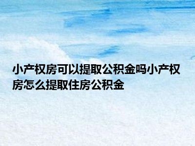 小产权房无法办理公积金提取。小产权房是指在农村集体土地上建设的房屋,未缴纳土地出让金等费用,其产权证不是由国家房管部门颁发,而是由乡政府或村政府颁发,亦称“乡产权房”。“小产权房”不是法律概念,是人们在社会实践中形成的一种约定俗成的称谓。该类房没有国家发放的土地使用证和预售许可证,购房合同在国土房管局不会给予备案。所谓产权证亦不是真正合法有效的产权证。 小产权房的出现与城市房价蹿升密不可分,其成为社会关注的热点亦是从房价上涨迈入快速之年的2007年开始的。按照国家的相关要求,“小产权房”不得确权发证,不受法律保护。 根据住房公积金管理条例第二十四条职工有下列情形之一的,可以提取职工住房公积金账户内的存储余额:(一)购买、建造、翻建、大修自住住房的;(二)离休、退休的;(三)完全丧失劳动能力,并与单位终止劳动关系的;(四)出境定居的;(五)偿还购房贷款本息的;(六)房租超出家庭工资收入的规定比例的。 提取公积金的具备条件没有办理过公积金或者公积金组合贷款的房屋需要具备国有土地使用证和房屋所有权证 建造、翻修、大修具有产权自住住房的,提取住房公积金的办理手续。办理公积金提取的资料(1)翻建、大修住房的,需提供市、区房屋安全鉴定部门出具的《房屋安全鉴定书》和《危险房屋通知书》原件及复印件、以及《房屋所有权证》和《国有土地使用证》的原件及复印件; (2)建造住房的,需提供市、区规划部门出具的《建设工程规划许可证》和《建设工程规划验收合格证》原件及复印件; (3)施工合同及写明本人(或配偶)姓名的购买建筑材料的发票原件及复印件。 (4)单位审核盖章的《住房公积金提取申请表》; (5)本人身份证及复印件; (6)本人住房公积金缴存凭证原件及复印件(对账簿或联名卡); (7)单位开具的《住房公积金提取凭证》;