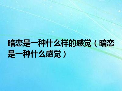 目前应该是有很多小伙伴对于暗恋是一种什么感觉方面的信息比较感兴趣,现在小编就收集了一些与暗恋是一种什么感觉相关的信息来分享给大家,感兴趣的小伙伴可以接着往下看,希望会帮助到你哦。