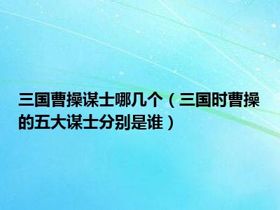 目前应该是有很多小伙伴对于三国时曹操的五大谋士分别是谁方面的信息比较感兴趣,现在小编就收集了一些与三国时曹操的五大谋士分别是谁相关的信息来分享给大家,感兴趣的小伙伴可以接着往下看,希望会帮助到你哦。