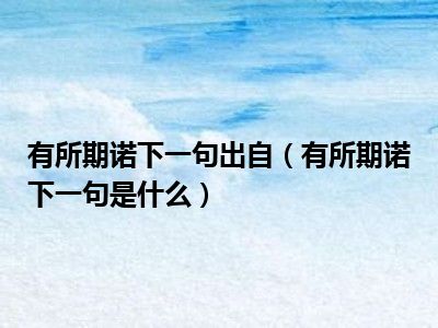 目前应该是有很多小伙伴对于有所期诺下一句是什么方面的信息比较感兴趣,现在小编就收集了一些与有所期诺下一句是什么相关的信息来分享给大家,感兴趣的小伙伴可以接着往下看,希望会帮助到你哦。