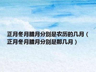 目前应该是有很多小伙伴对于正月、冬月、腊月分别是那几月方面的信息比较感兴趣,现在小编就收集了一些与正月、冬月、腊月分别是那几月相关的信息来分享给大家,感兴趣的小伙伴可以接着往下看,希望会帮助到你哦。