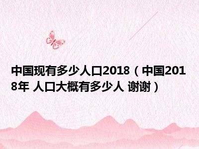目前应该是有很多小伙伴对于中国2018年 人口大概有多少人 谢谢。方面的信息比较感兴趣,现在小编就收集了一些与中国2018年 人口大概有多少人 谢谢。相关的信息来分享给大家,感兴趣的小伙伴可以接着往下看,希望会帮助到你哦。