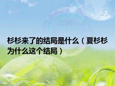 目前应该是有很多小伙伴对于夏杉杉为什么这个结局方面的信息比较感兴趣,现在小编就收集了一些与夏杉杉为什么这个结局相关的信息来分享给大家,感兴趣的小伙伴可以接着往下看,希望会帮助到你哦。