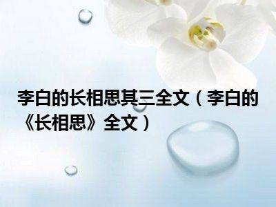 扩展资料背景:这三首《长相思》的创作时间是在李白被“赐金还山”之后,他被排挤离开长安后于沉思中回忆过往情绪之作